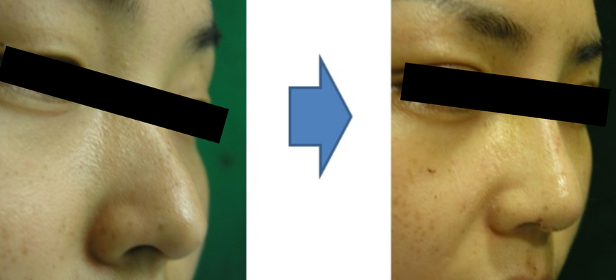 울퉁불퉁했던 콧대 라인이 안정된 곡선으로 바뀌어