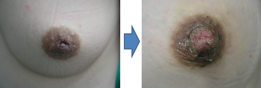 함몰유두는 유두가 안쪽으로 들어가 외부로 잘 돌출되지