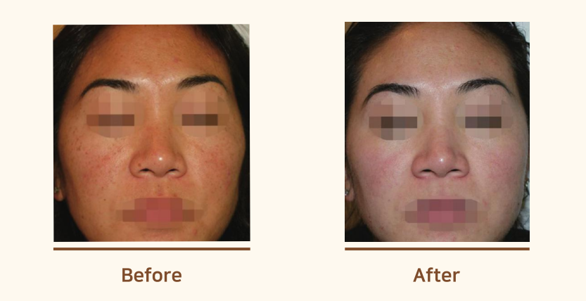 모세혈관 확장, 홍조, 기미, 잡티 등이 완화됩니다.