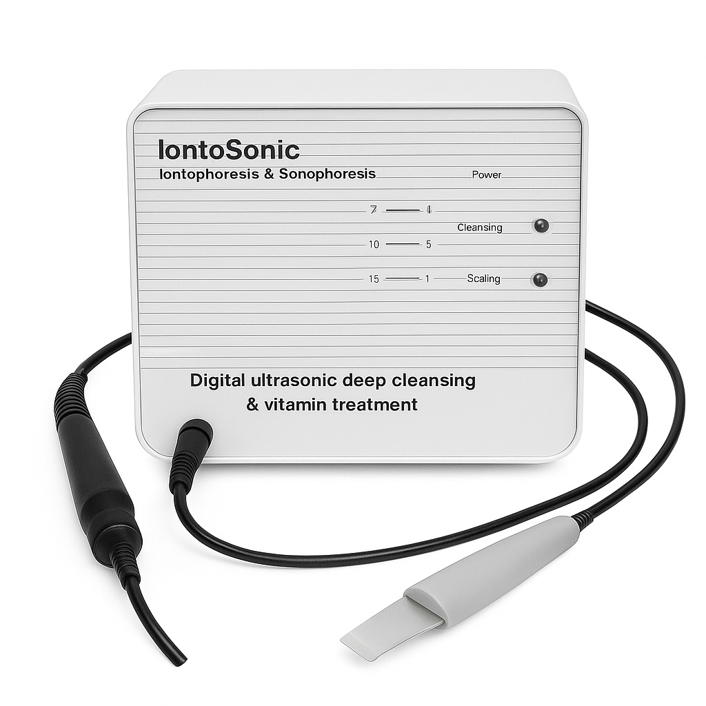 이온토소닉은 **이온토포레시스(Iontophoresis)**와 초음파(sonic) 기술을 결합하여 피부 깊숙이 유효 성분을 침투시키는 피부 관리 시술입니다.
